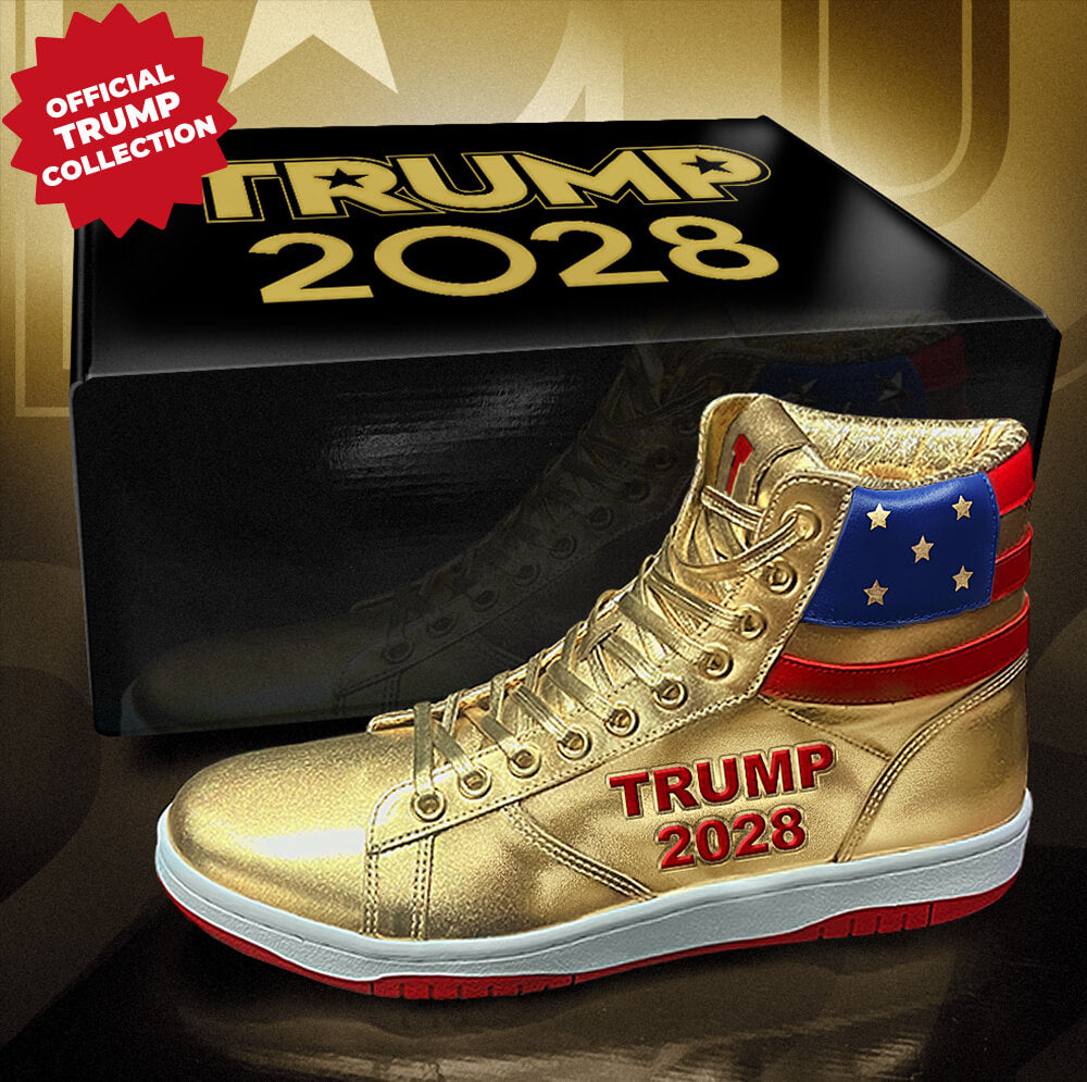 Boldly stamped with “TRUMP 2028” on the side, these gold sneakers are pure fire. These are the gold sneakers every true TRUMP fan and collector has been waiting for. Don’t blink—you’ll miss them. Once they’re gone, they’re gone. Back by demand—our last gold high-top SOLD OUT in hours. That was two years ago.