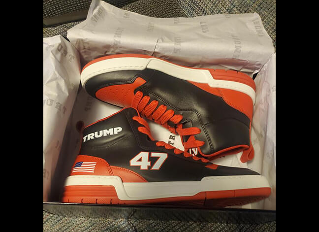 NO. GetTrumpSneakers.com is not political and has nothing to do with any political campaign. 45Footwear is not owned, managed or controlled by Donald J. Trump, The Trump Organization, CIC Ventures LLC or any of their respective principals or affiliates. 45Footwear uses Donald J. Trump's name, likeness and image under paid license from CIC Ventures LLC, which license may be terminated or revoked according to its terms.
